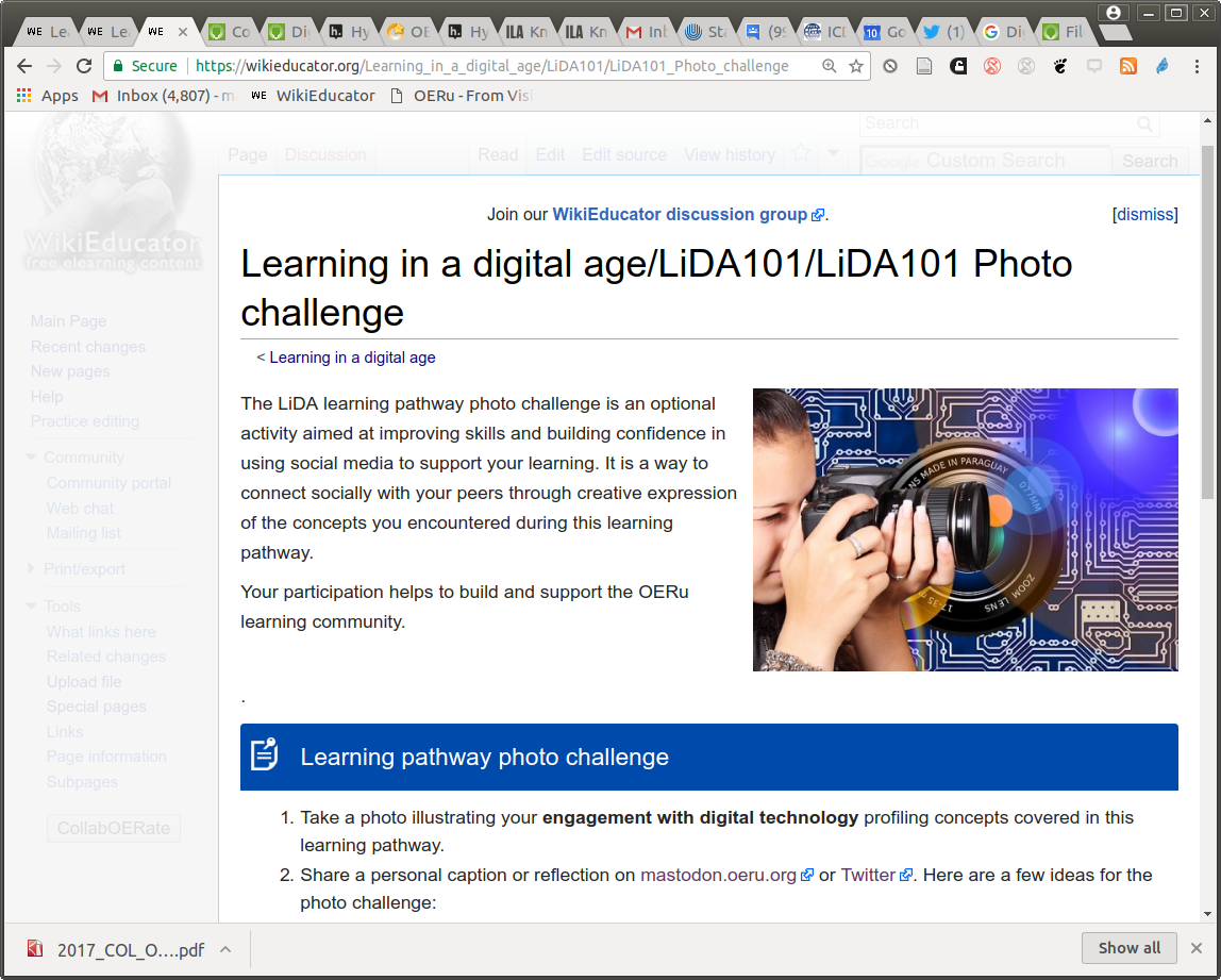 - Toot including a relevant hashtag (e.g. #oeru or #lida101 for the "Learning in a Digital Age 101" course),